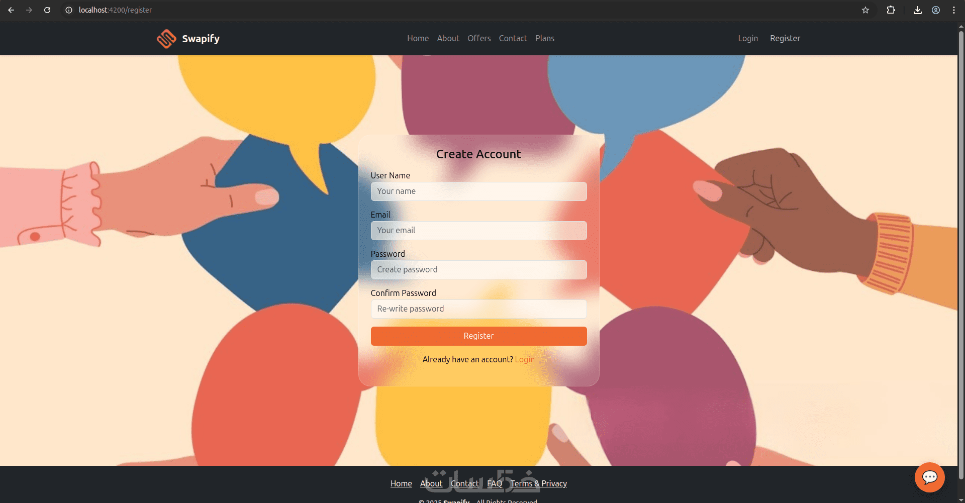 صفحة إنشاء حساب (Register)