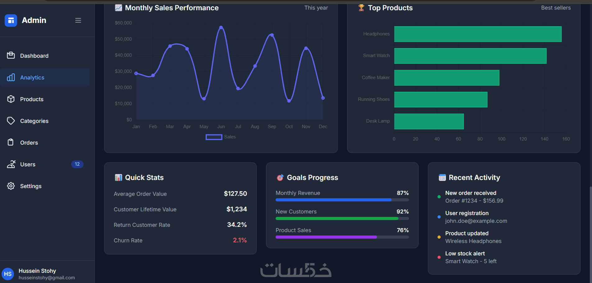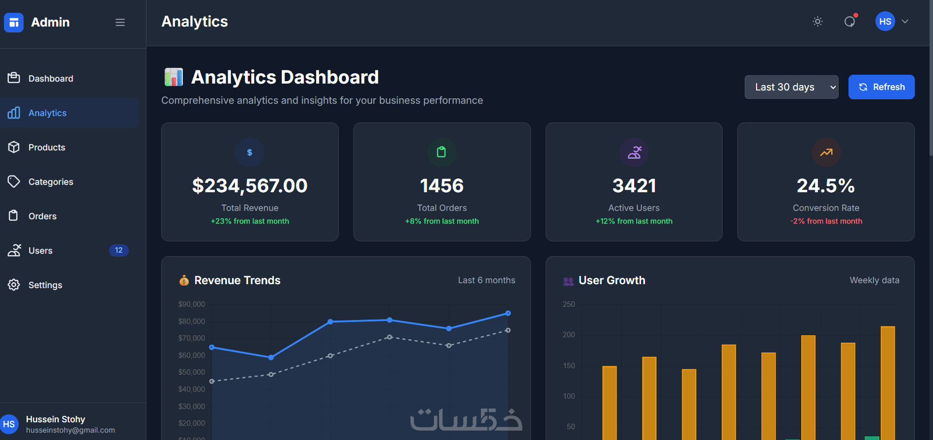ملاحظة: لبرمجة لوحة تحكم كاملة أو ربطها بقواعد بيانات حقيقية، يرجى مراجعة تطويرات الخدمة