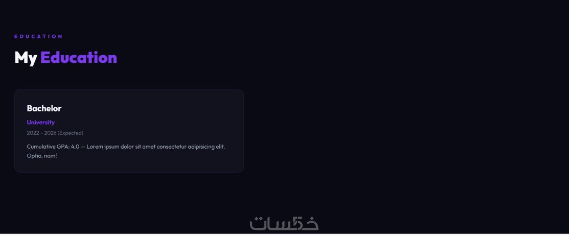 التعليم (Education): عرض لمسيرتك الأكاديمية وشهاداتك.