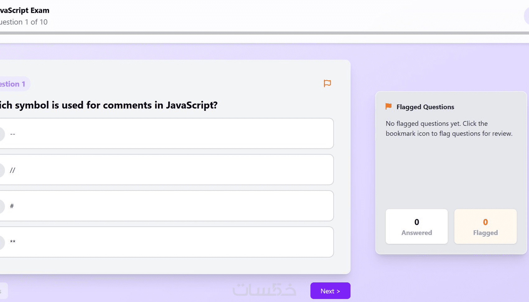 صفحة الامتحان مع مؤقت زمني تلقائي (10 دقائق)