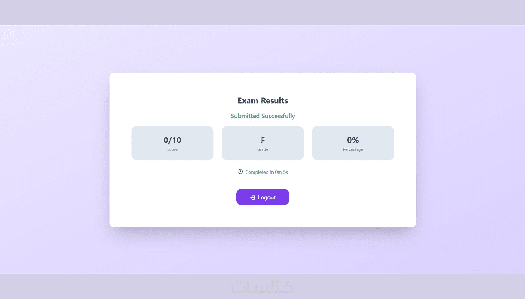 صفحة نتائج تفصيلية بعد الانتهاء
