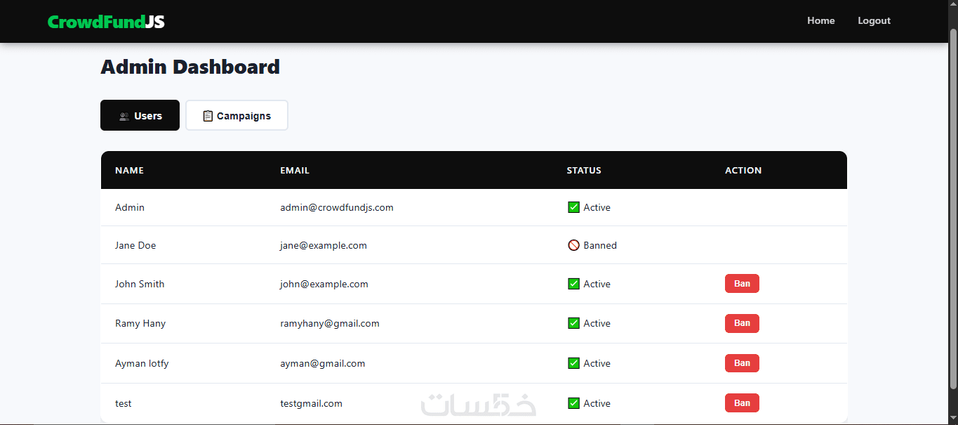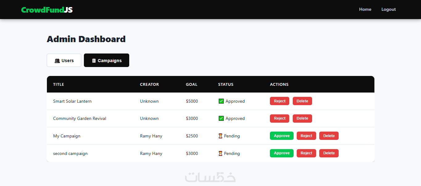 عند الضغط على زر القبول يقبل الحملة وعند الضغط على زر الحظر لليوزر يحظره وعرض مناسب لجميع الشاشات (التلفون و الكومبيوتر والتابلت)