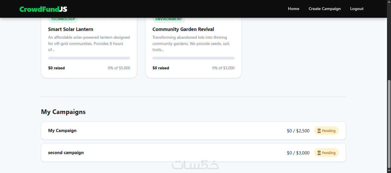 مشروع يتكون من 6 صفحات لتقديم الحملات و دعم لها