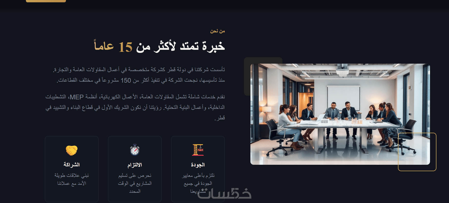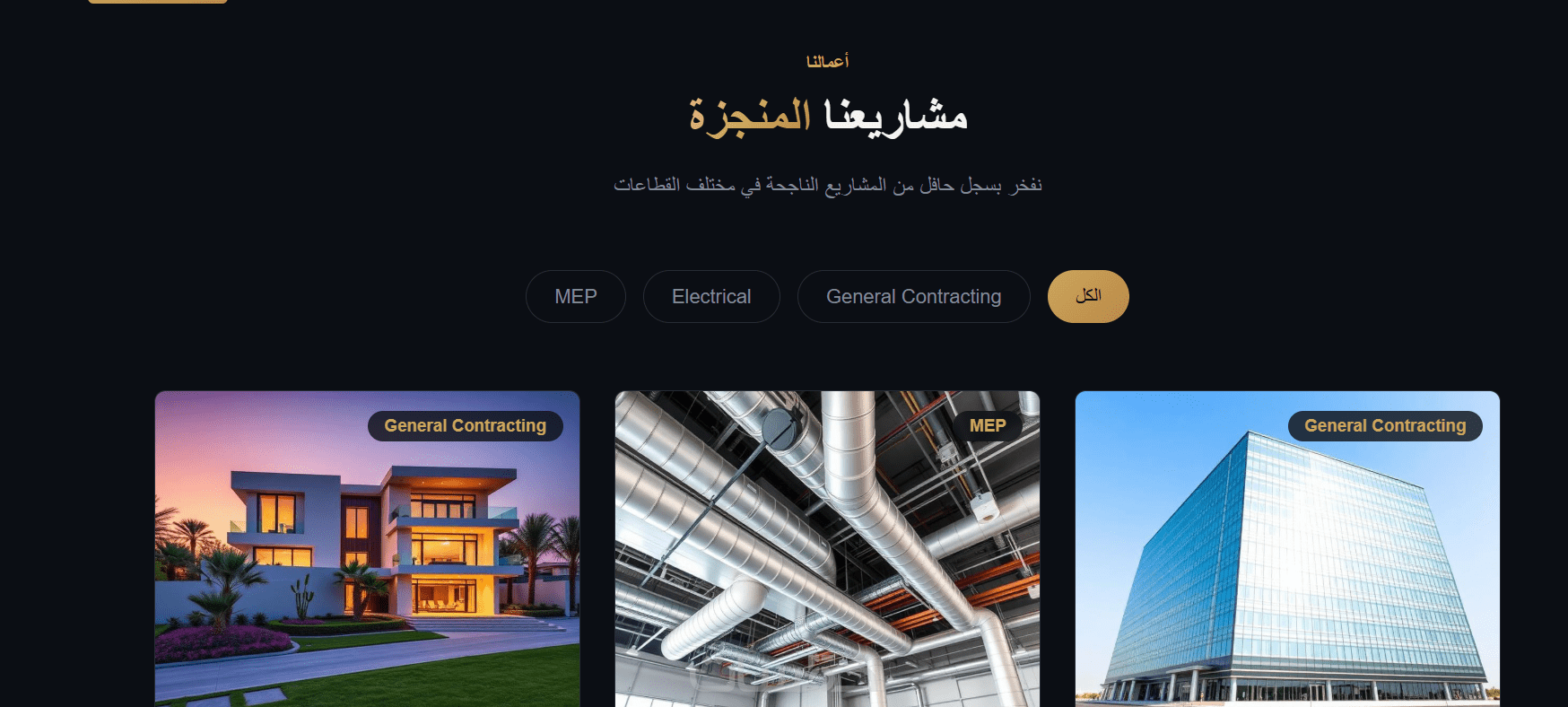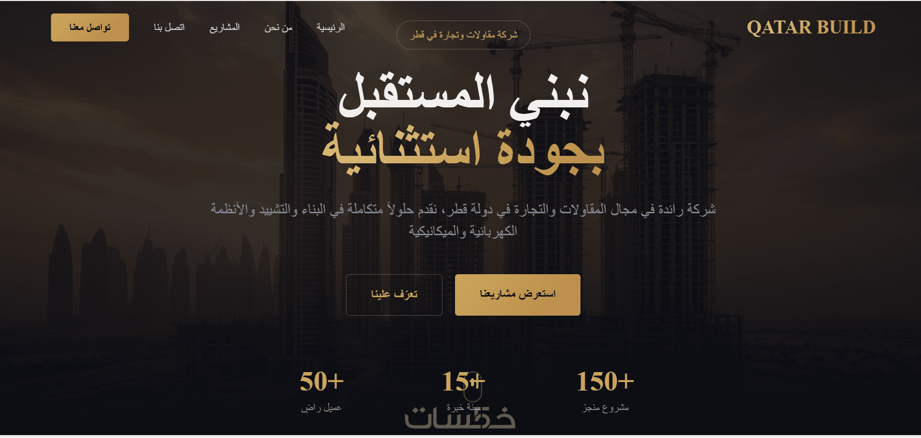 قدّم خدمة تصميم وتطويرالواجهة الامامية لموقع إلكتروني لشركات المقاولات والتجارة، يساعدك على عرض خدماتك ومشاريعك بطريقة احترافية تعزز ثقة العملاء وتزيد فرص التعاقد.