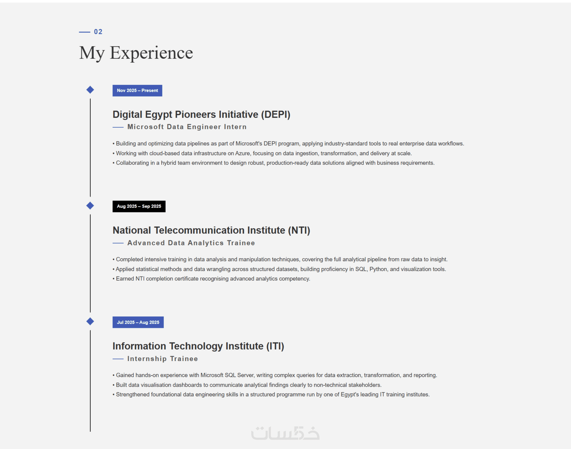 سأقوم بتصميم وتطوير بورتفوليو عصري ومبتكر، مع التركيز على تجربة مستخدم (UX) سلسة وواجهة مستخدم (UI) نظيفة تناسب تخصصك وتبرز قيمتك بأفضل صورة ممكنة.
