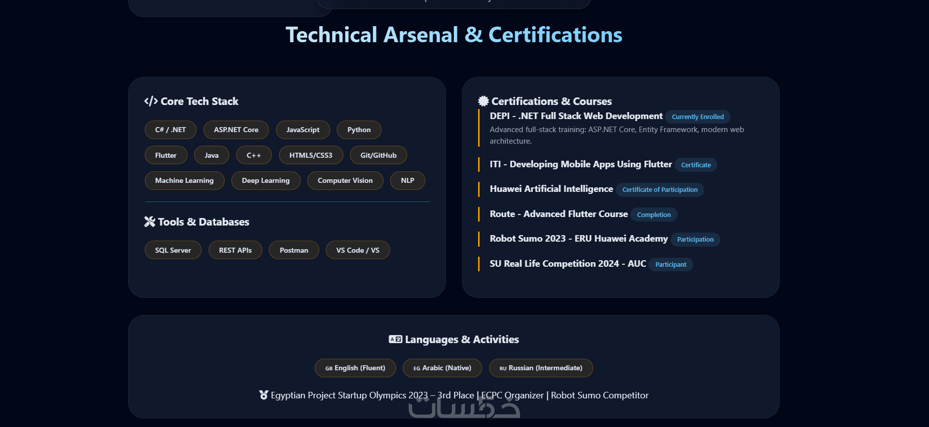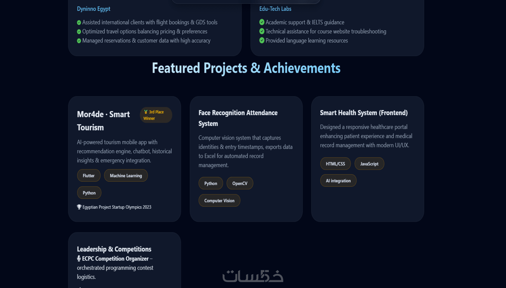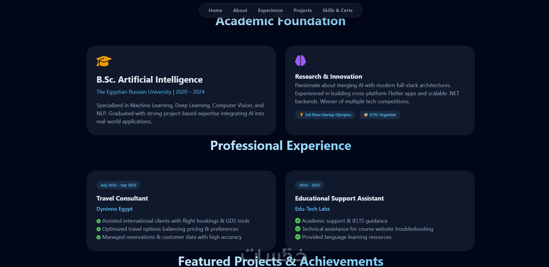 أنا مطور ويب Full-Stack، أقوم بتصميم بورتفوليو عصري، سريع، ومتجاوب مع جميع الأجهزة لمساعدتك في إبراز أعمالك وجذب العملاء أو أصحاب العمل.