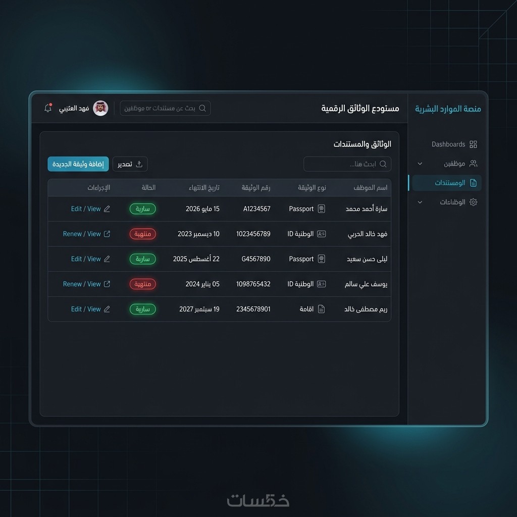 تنبيهات تلقائية للوثائق التي أوشكت على الانتهاء (Expiring Soon) لتجنب الغرامات القانونية.