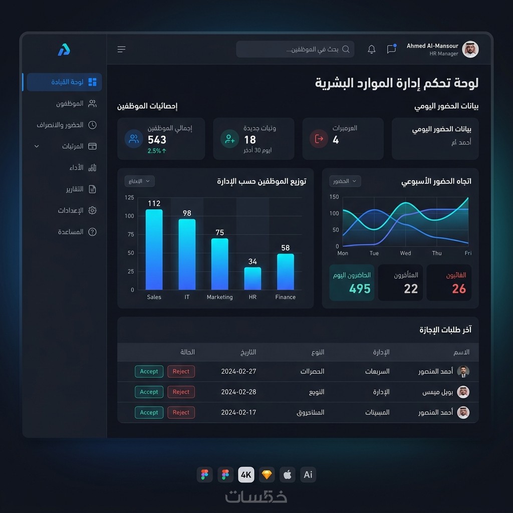 لوحة تحكم (Dashboard) ذكية للمدراء لمتابعة أداء الشركة لحظياً.