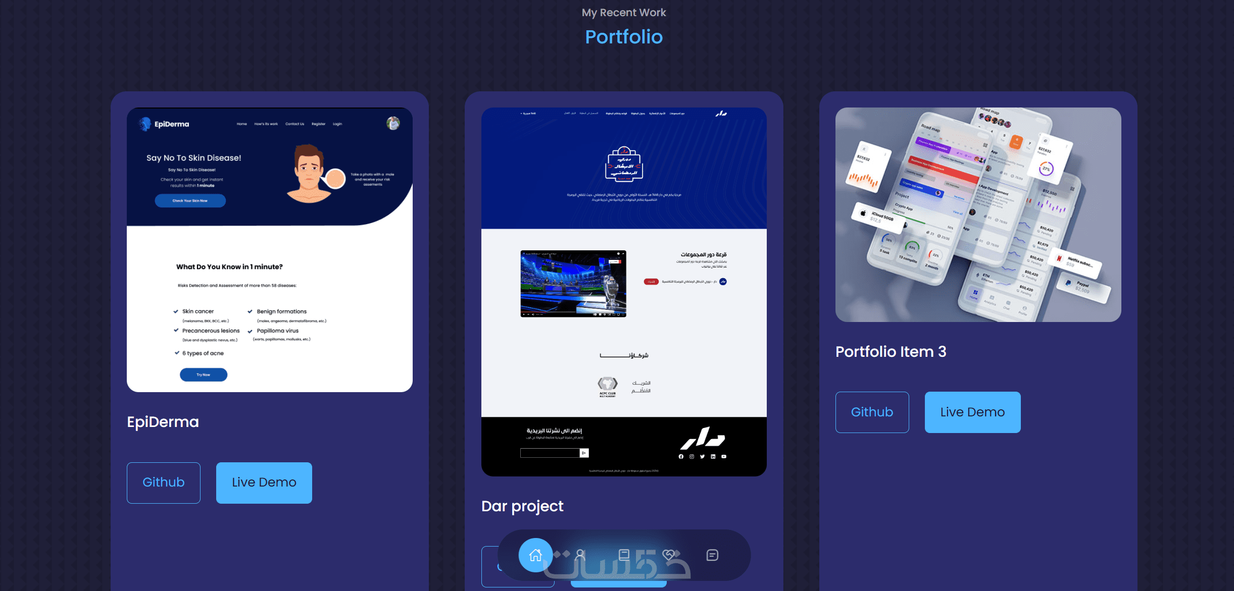 Projects Gallery: عرض لـ 3 إلى 5 مشاريع سابقة مع روابطها (أو صور لها).