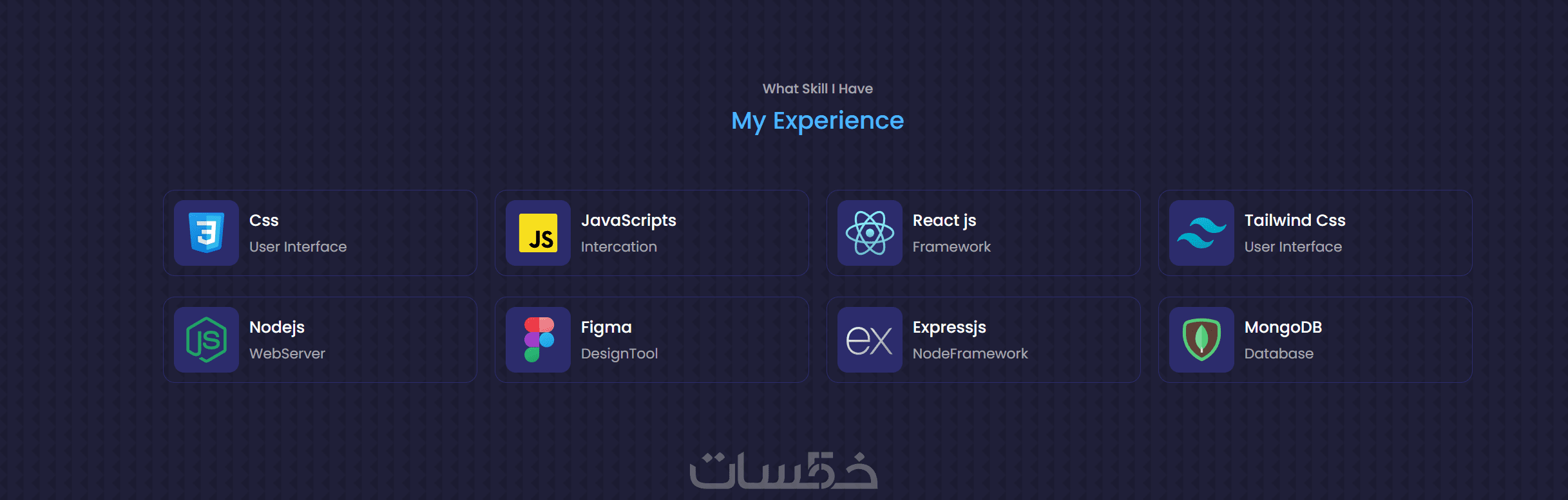 Skills: عرض المهارات التقنية (بشكل أيقونات أو أشرطة تقدم).