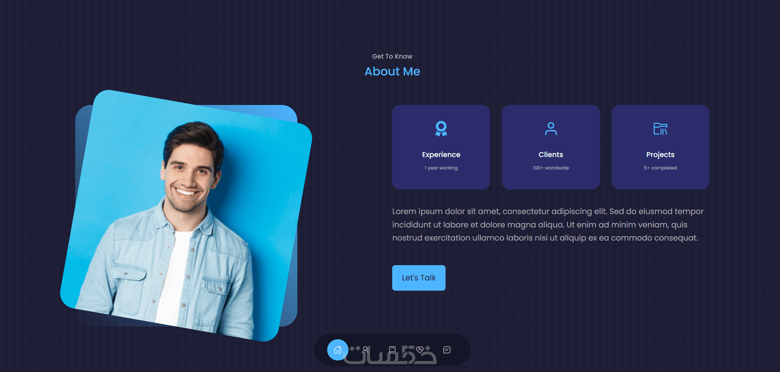 Hero Section: واجهة الموقع مع صورة شخصية وعنوان جذاب.