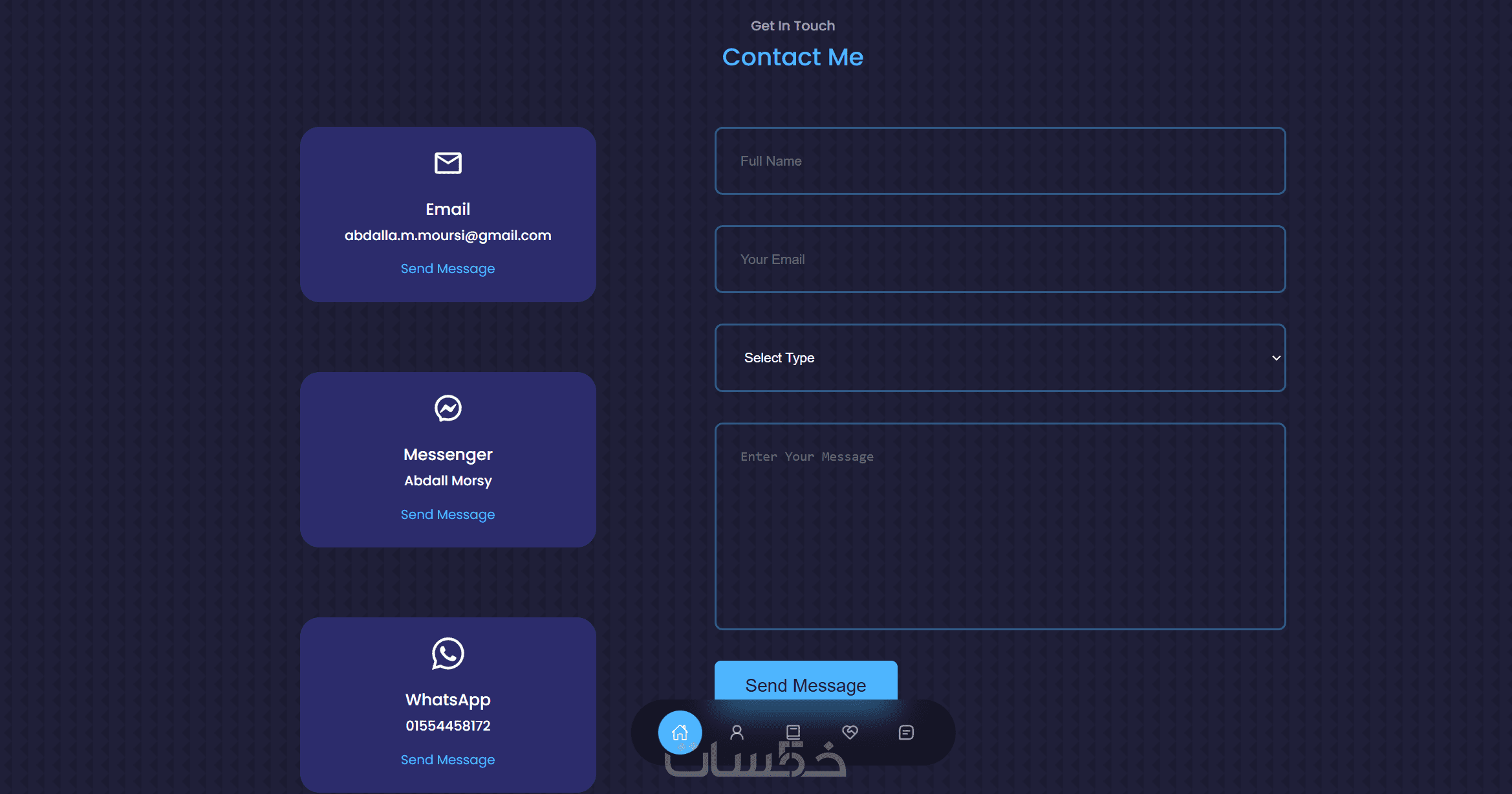 Contact Me: نموذج تواصل بسيط مع روابط حسابات التواصل الاجتماعي.