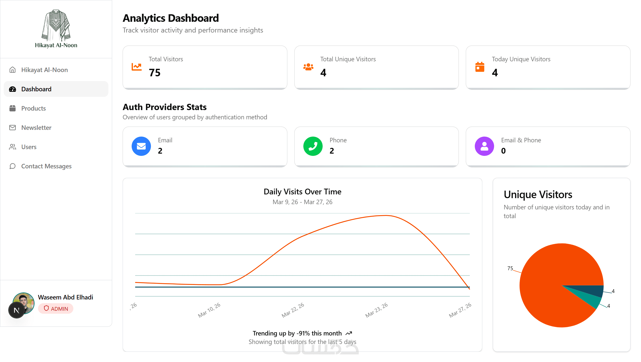 حماية الداشبورد عبر تسجيل دخول للمستخدمين مع إمكانية إضافة صلاحيات.