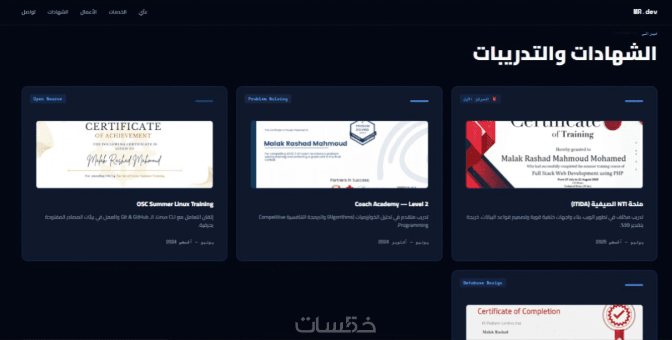 مساحة مخصصة لعرض إنجازاتك وشهاداتك بشكل يضفي مصداقية عالية.