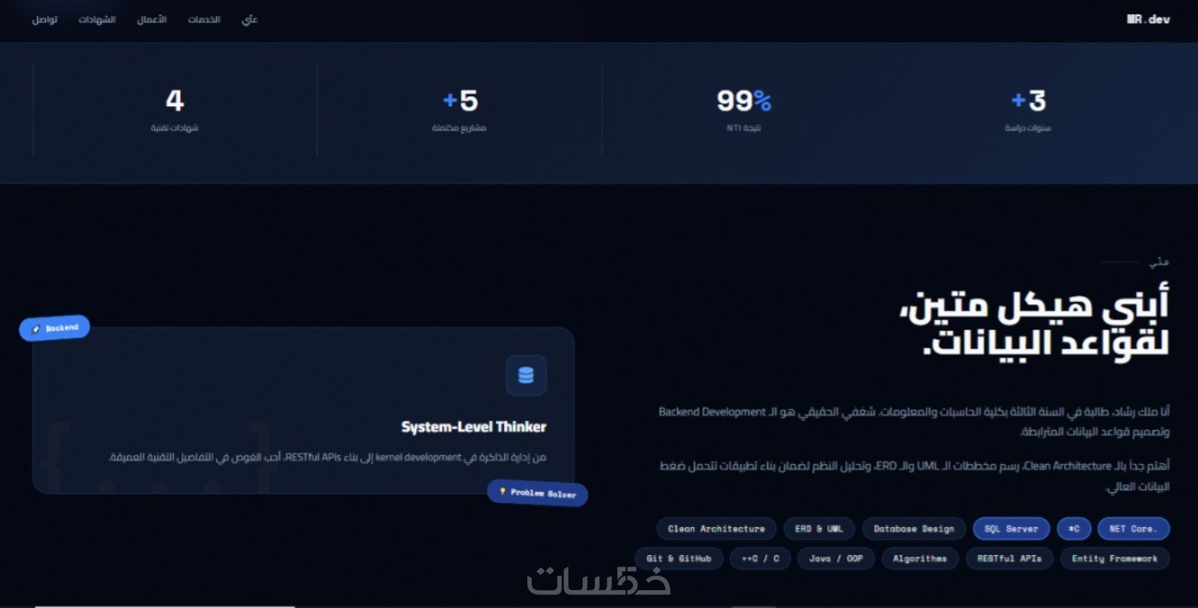السيرة الذاتية التقليدية لم تعد تكفي! امتلاك موقع شخصي (Portfolio) بتصميم عصري هو استثمارك الأول لإثبات مهاراتك وبناء ثقة حقيقية مع عملائك.