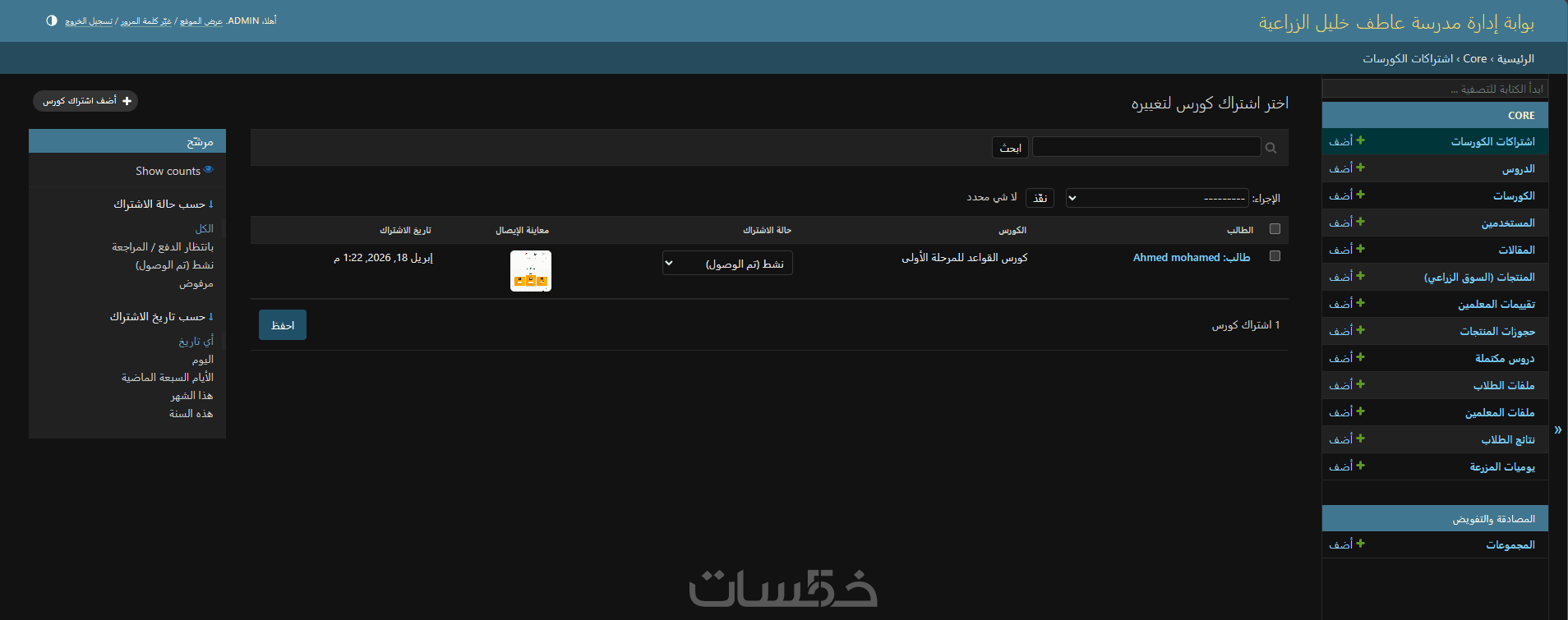 تحكم كامل لك كمدير في (الطلاب، المعلمين، الكورسات، والمبيعات).