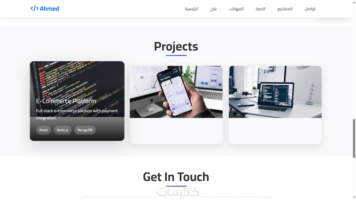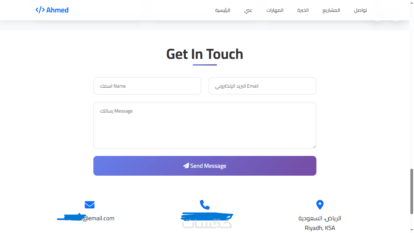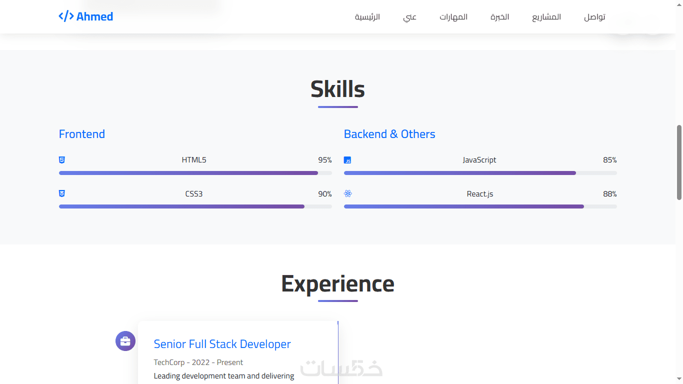 • قسم تعريفي (About) يعرض خبراتك ومهاراتك
