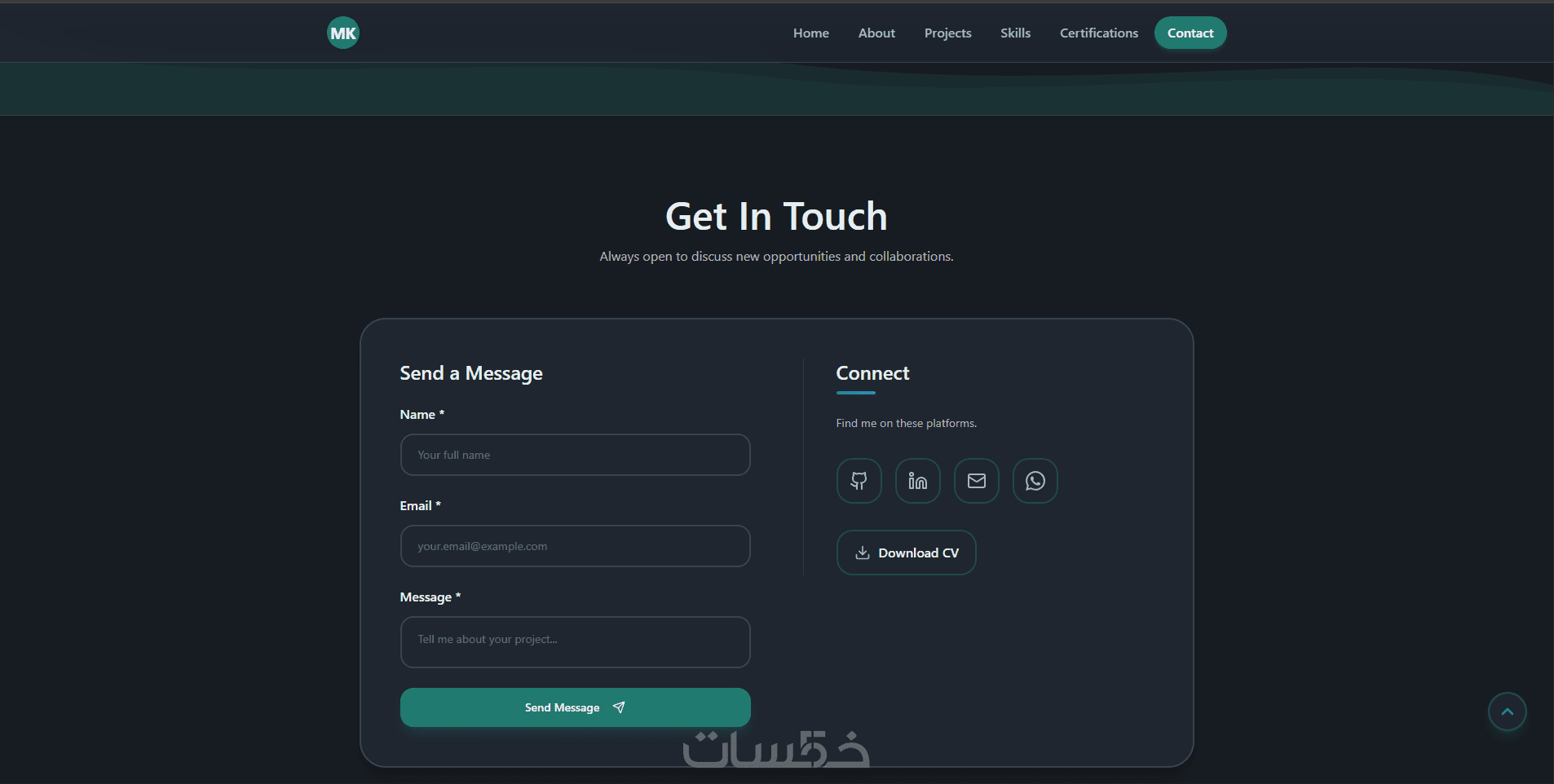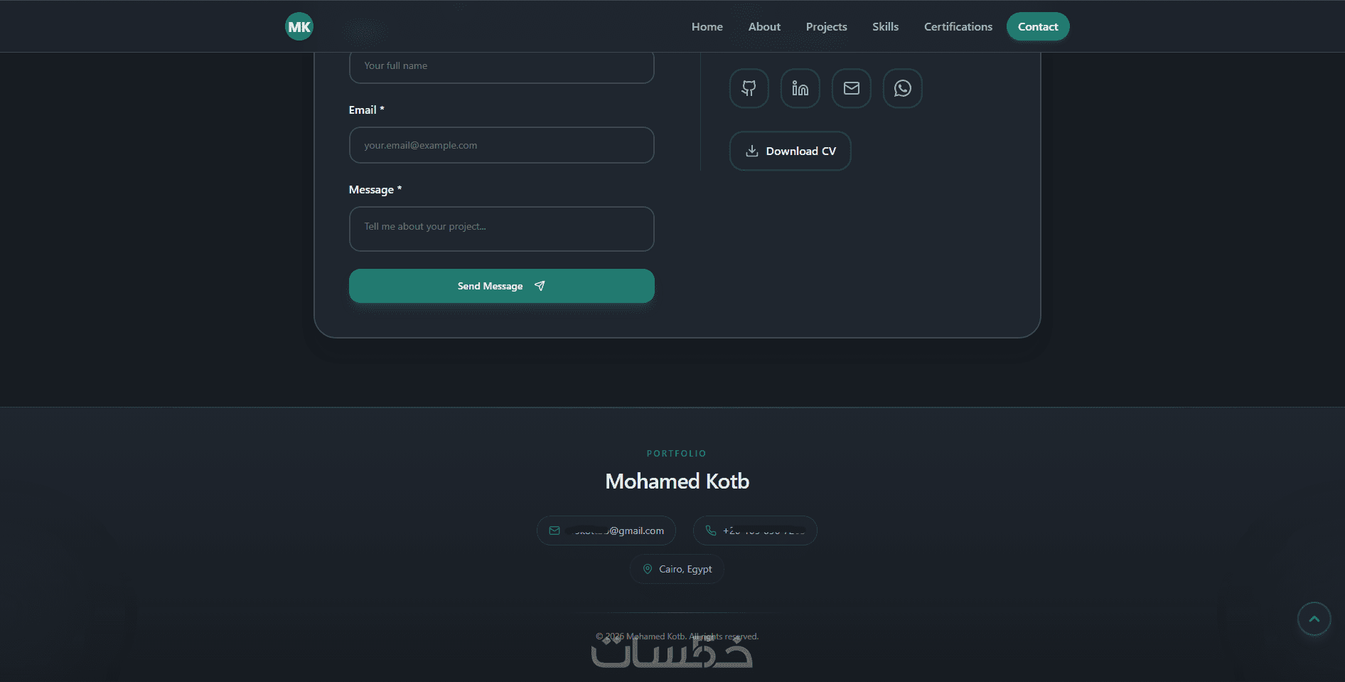 إضافة منصات التواصل الاجتماعي الخاصة بك مثل Whatsapp, Linkedin, Github, Email,...