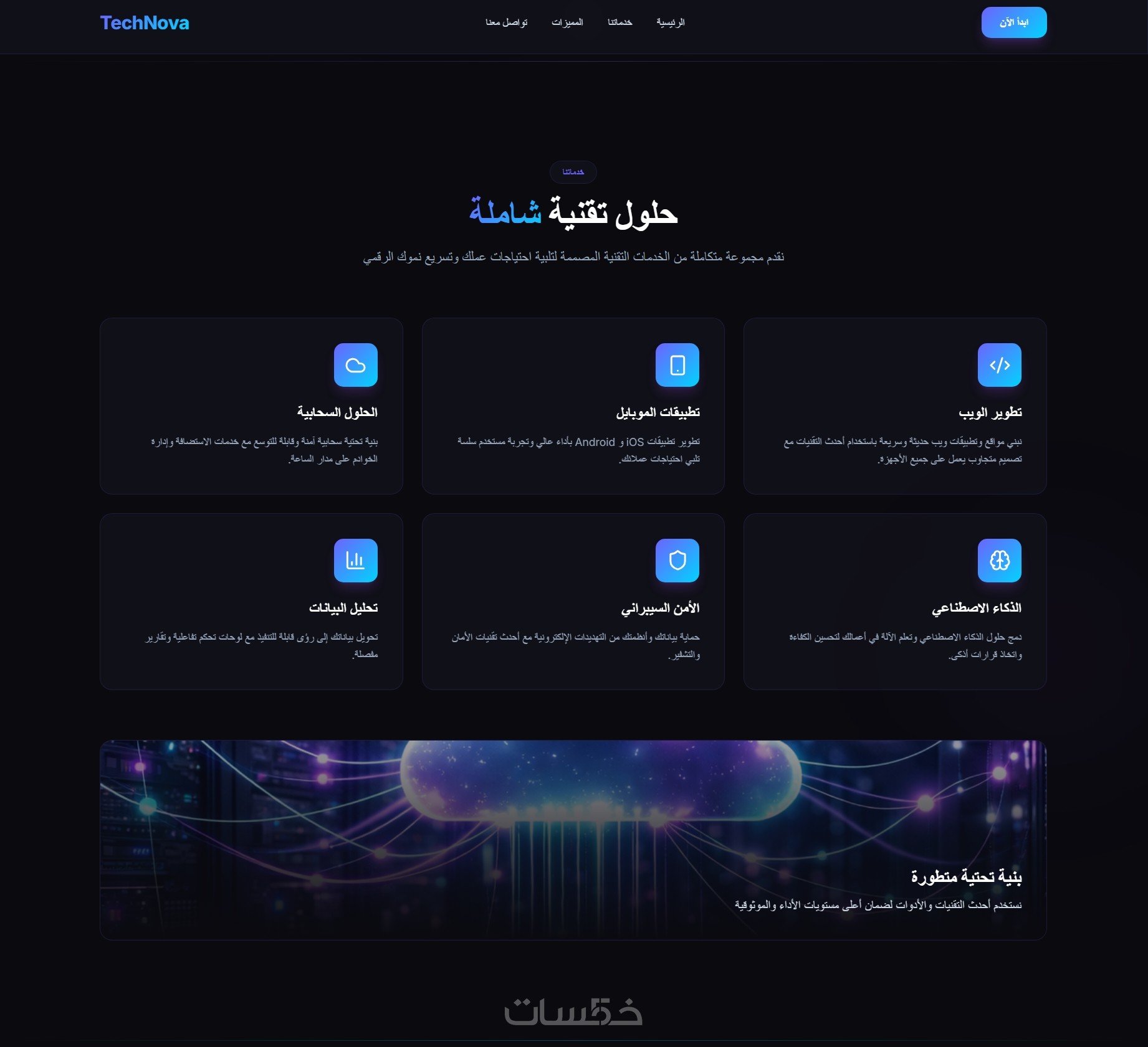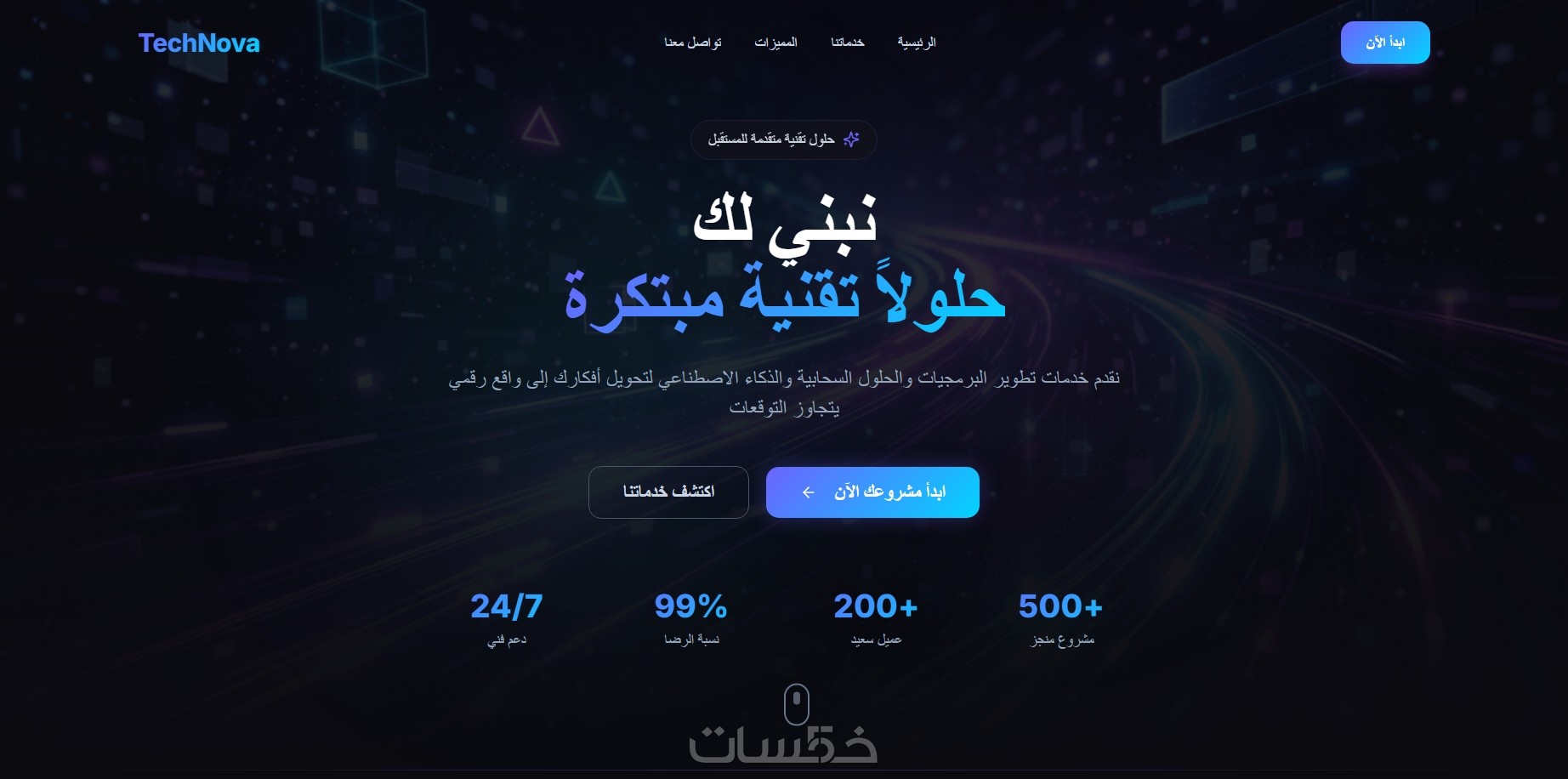 سأقدم لك تصميم حديث (Modern UI) يلفت انتباه الزائر من أول ثانية.