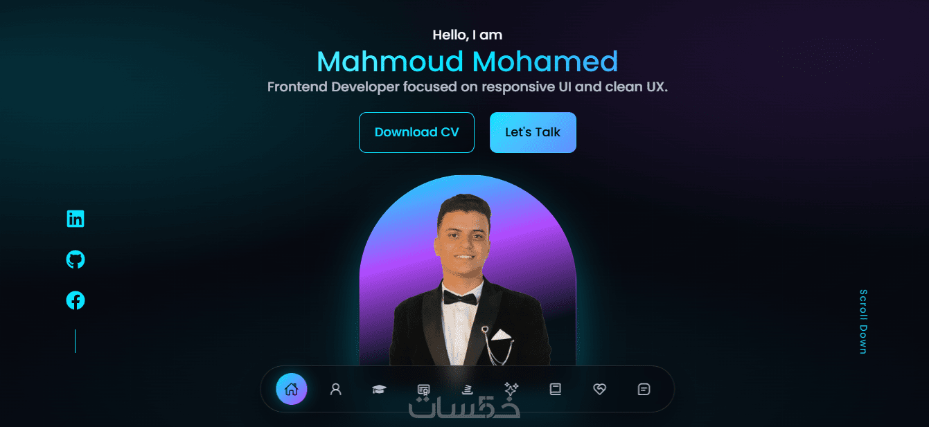 * موقع Portfolio كامل مكوّن من 5 Sections جاهز للاستخدام