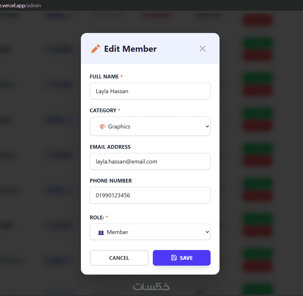 حكم كامل (إضافة، تعديل، حذف، وقراءة) في بيانات الأعضاء والجلسات، مع محرك بحث وفلترة فوري (Real-time) للوصول للبيانات في أجزاء من الثانية.