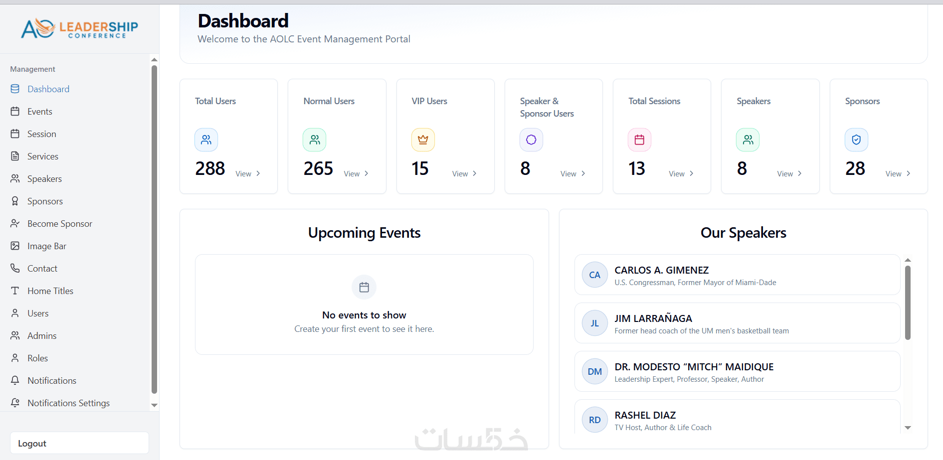 لوحة تحكم إدارية شاملة (Admin Dashboard)