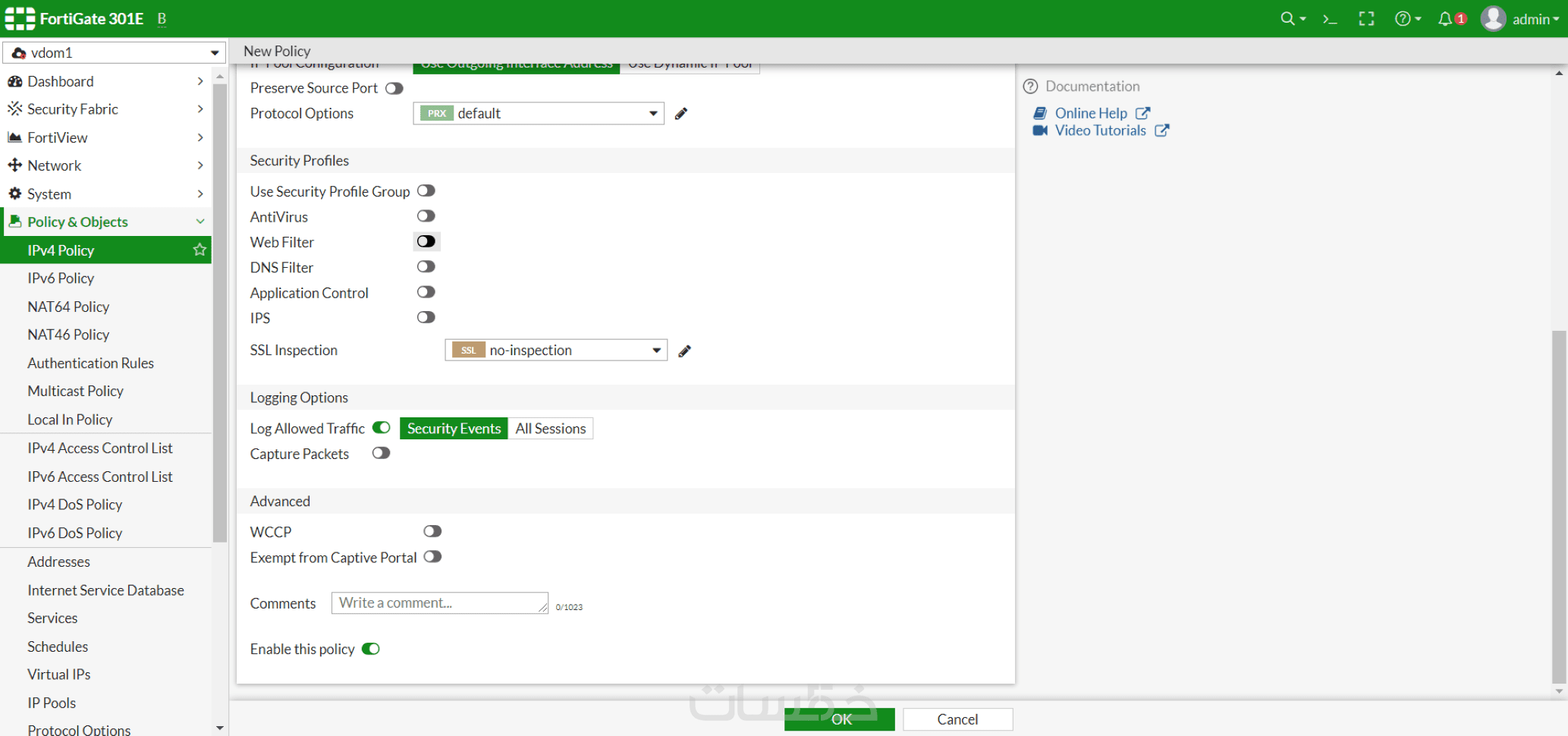 ربط جهاز FortiGate بـ FortiAnalyzer لتحليل وتسجيل الأنشطة.