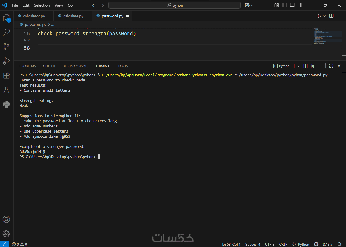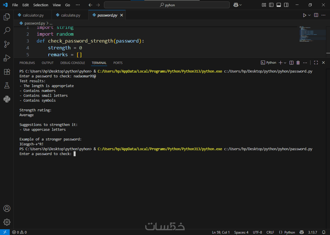 ملف Python يحتوي على أداة لفحص قوة كلمات المرور.