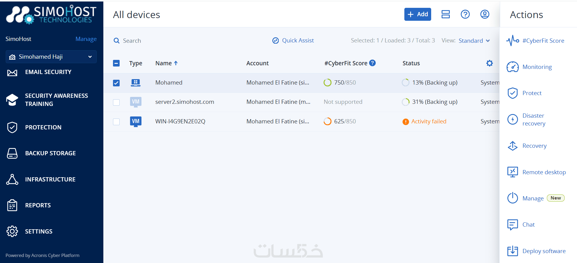 سيتم تسليم السيرفر أو الجهاز وهو يحتوي على SimoHost Cyber Protect Agent مثبت بشكل صحيح، ومربوط بالسحابة، ويعمل في الخلفية بنسبة استهلاك موارد منخفضة جداً لضمان عدم بطء الجهاز.