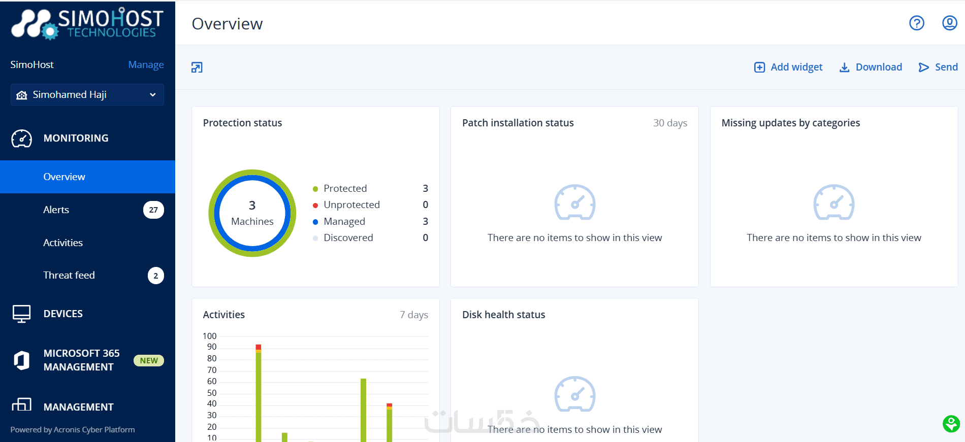 توفير وصول (أو تقارير) من لوحة تحكم مركزية تتيح لك رؤية حالة الحماية، ومواعيد النسخ الاحتياطي، وحالة السيرفر بشكل مباشر وسهل الفهم.
