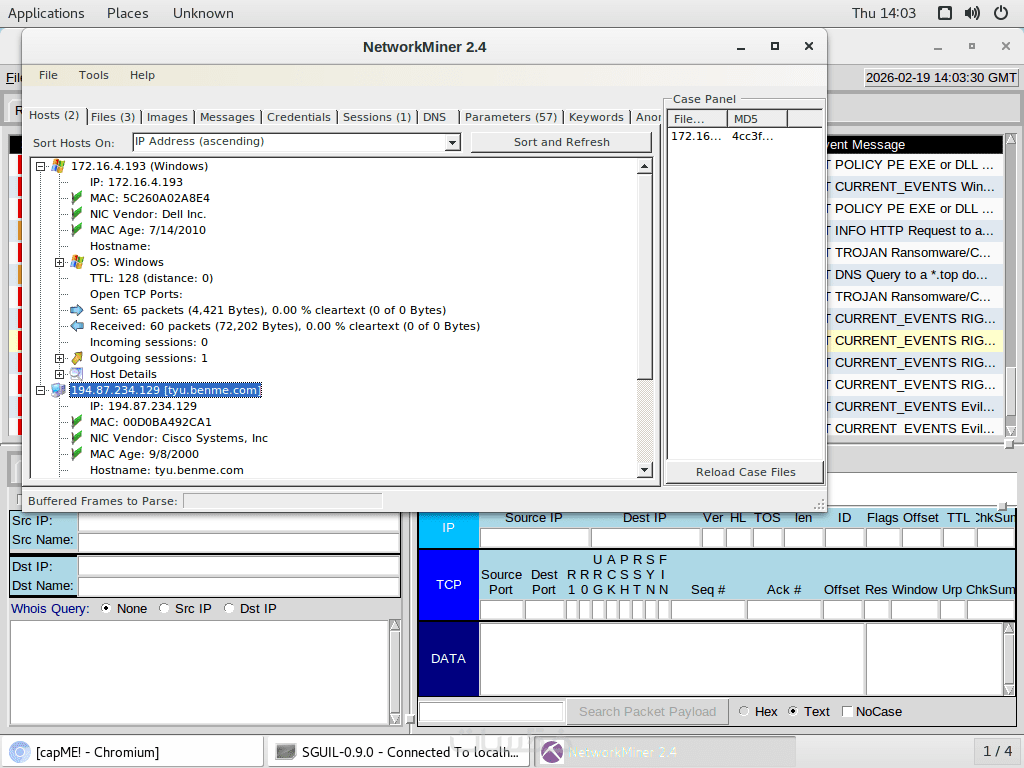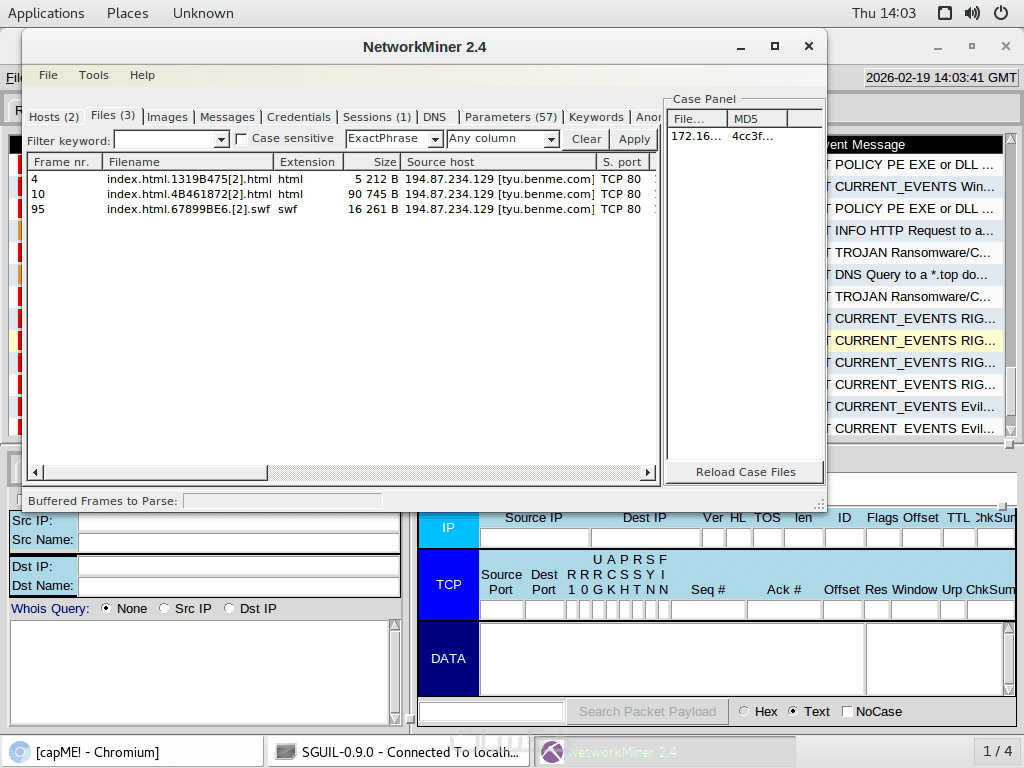 Network Forensics: تحليل حركة المرور وكشف الـ IPs للمهاجم والضحية.
