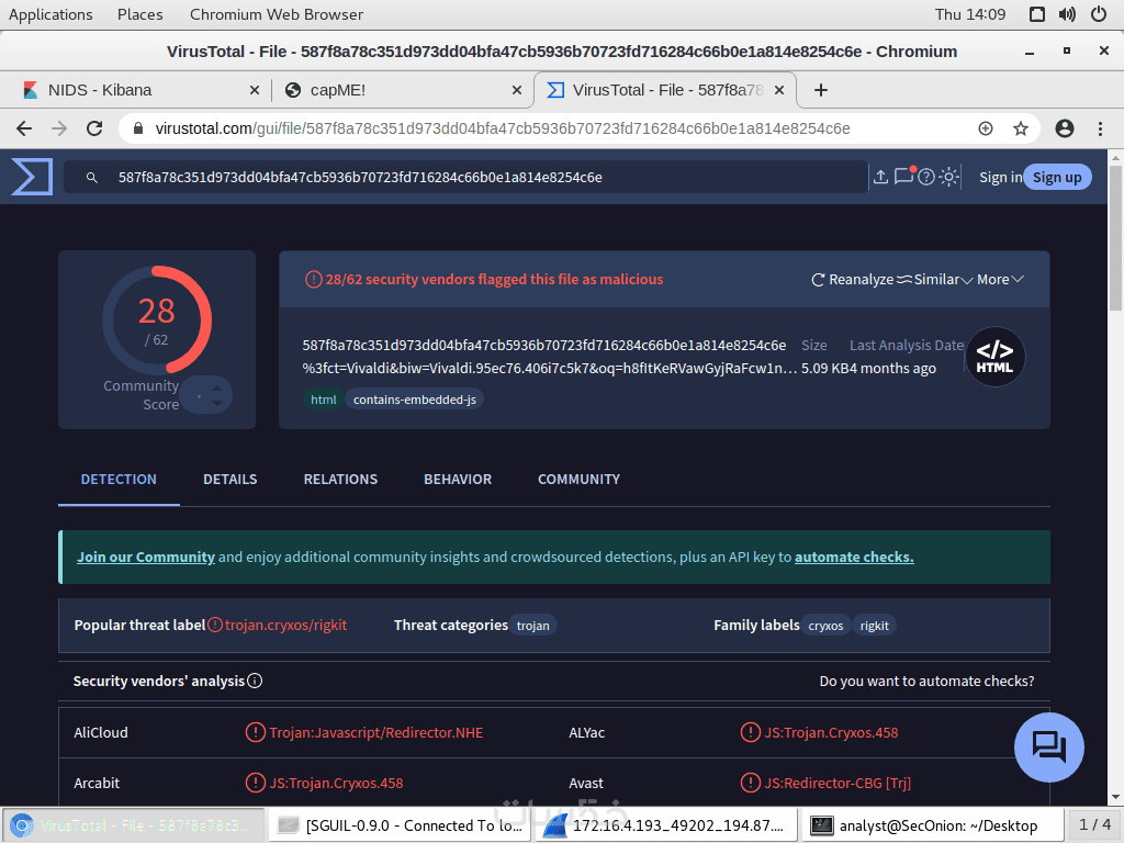 Analysis: Wireshark, Network Miner, VirusTotal, CyberChef.