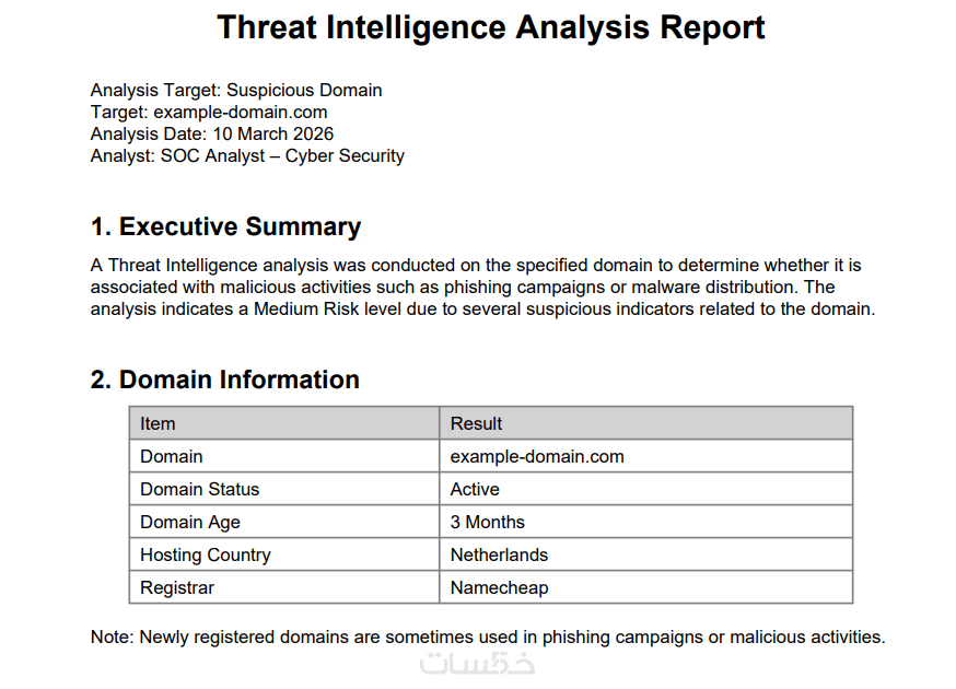 ✔ استخراج مؤشرات الاختراق (IOC) المرتبطة بالـIP أو الدومين إن وجدت.