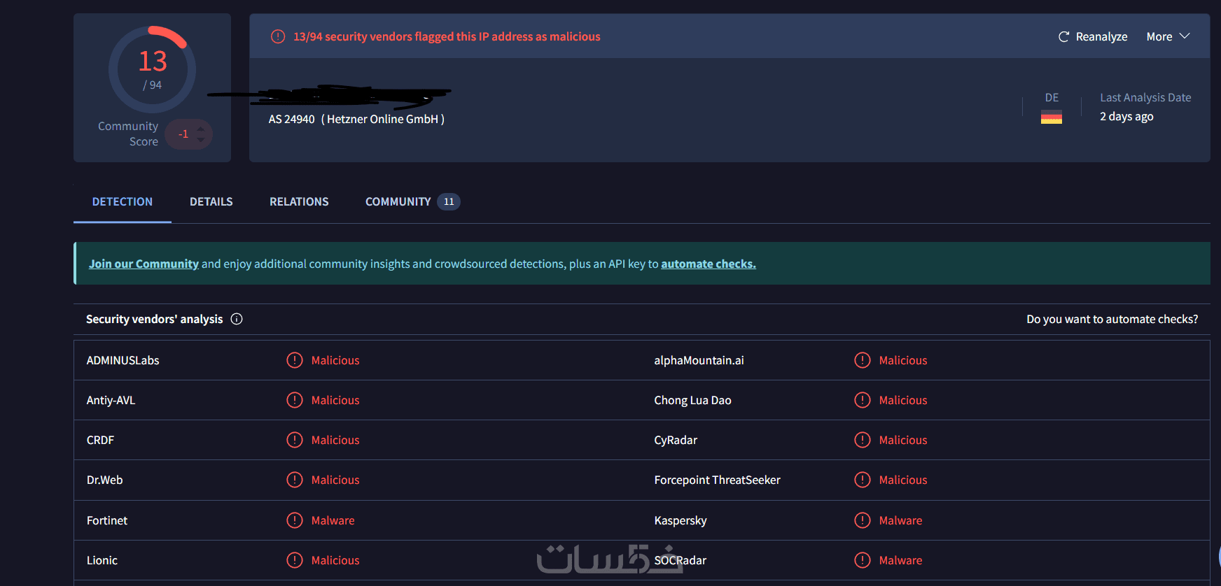 ✔ فحص السمعة الرقمية (Reputation Check) لمعرفة ما إذا كان الـIP أو الدومين مرتبطاً بأنشطة ضارة.