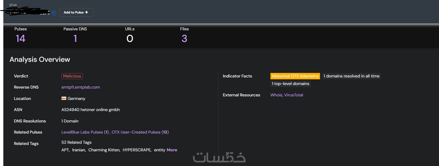 سأقوم بتقديم تحليل استخبارات تهديدات لعدد IP واحد أو Domain واحد يشمل