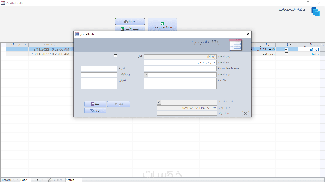 تطوير 3 : اضافه جدول وفورم ادخال وتقرير