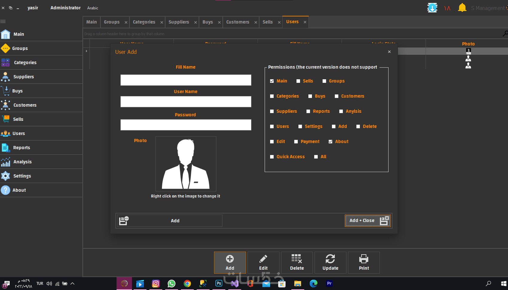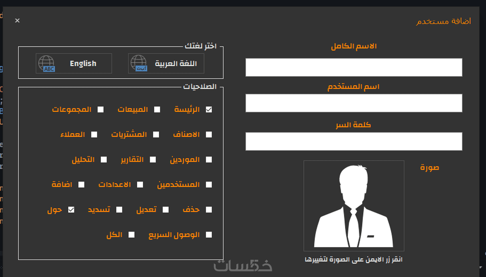 • عند تشغيل البرنامج لاول مرة سيطلب منكم اضافة مدير وتحديد اللغة عربية ام انجليزية وبعدها تسجيل الدخول