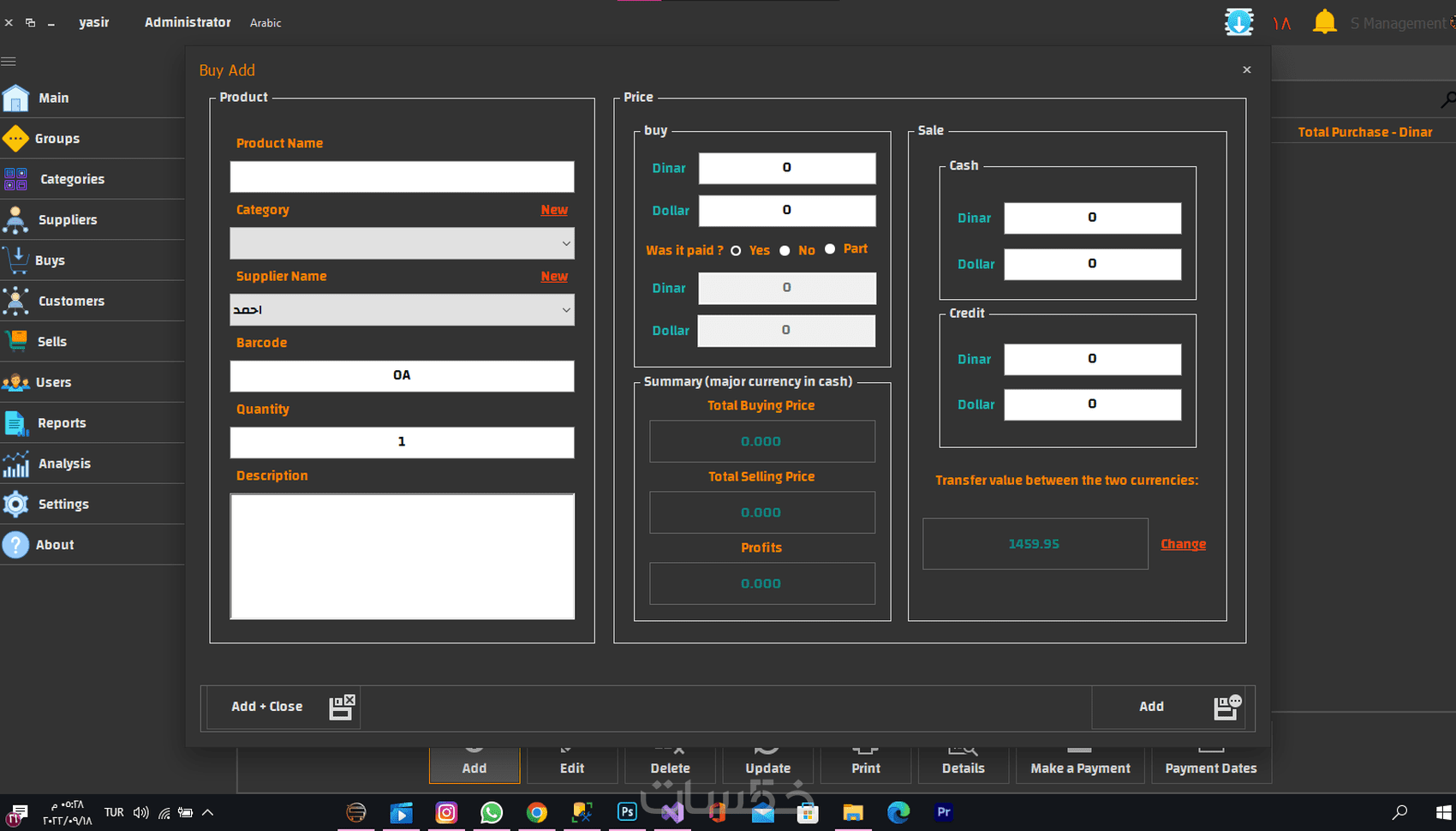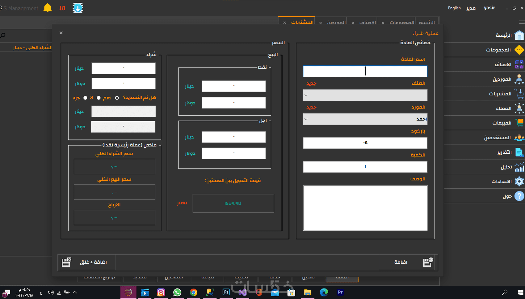 • حساب الاسعار بعملتين رئيسية وثانوية ويتم حساب مقدار التحويل بين العملتين