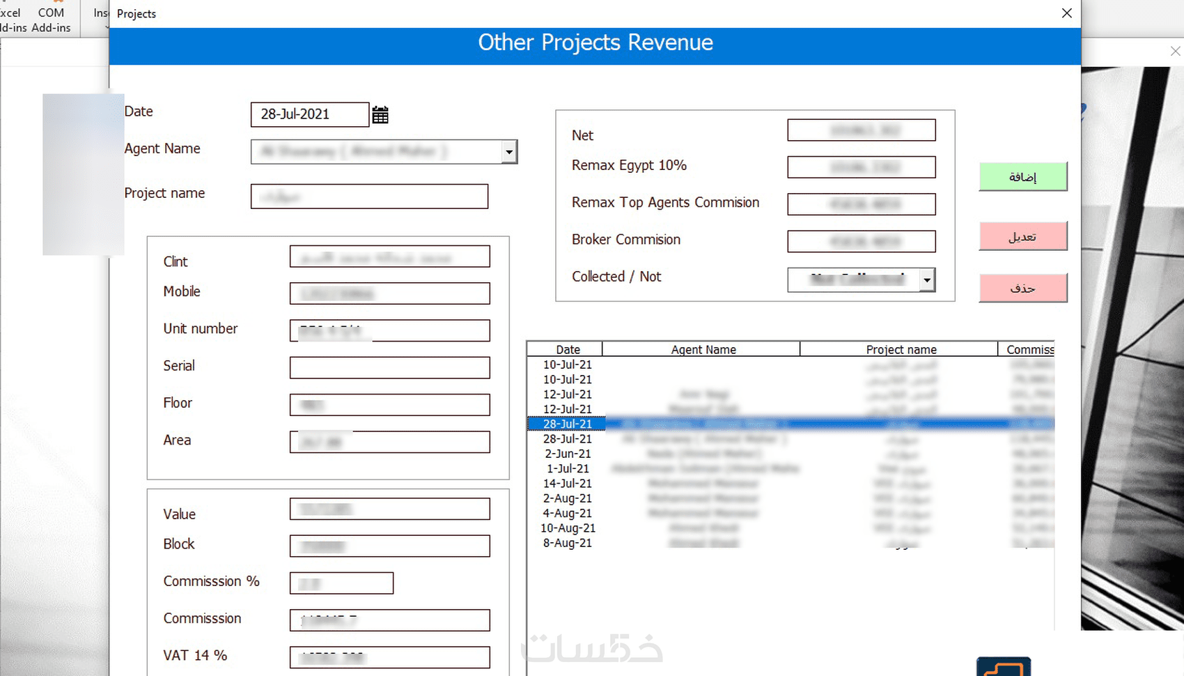 برنامج إدارة الحجوزات بقاعات الزفاف ( شاشة افتتاحية لتسجيل بيانات العميل وتاريخ الحجز والدفعات - أجندة حجوزات-عقود تأجير القاعة---)
