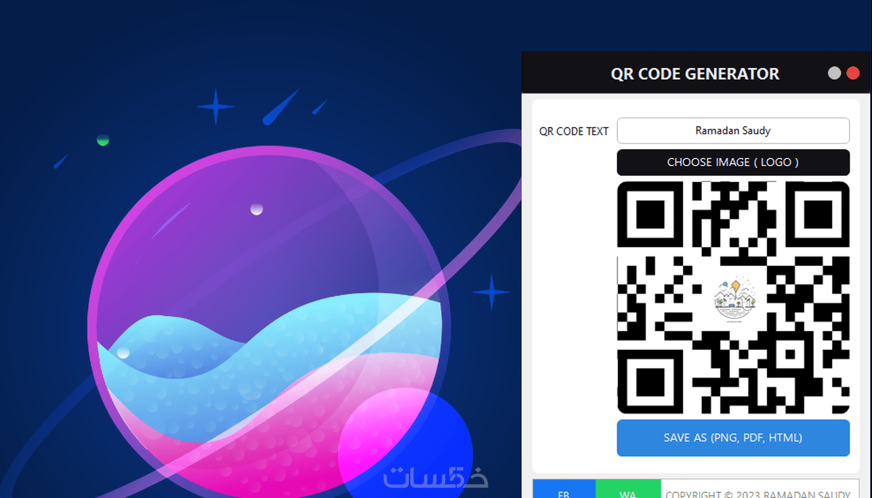 برنامج إنشاء QRCode بسهولة تامة من تصميمي وبرمجتي وإعدادي الخاص