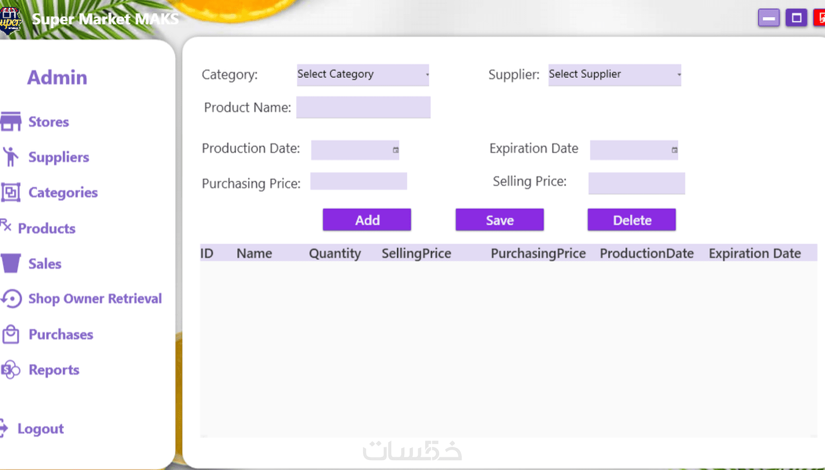 تقدر تضيف منتج جدد وتحذف منتج قديم وتعدل منتج عندك فى المخاذن القدرة على بيع منتجاتك للعميل وتسجيل كل عملات البيع والشراء داخل البرنامج باسم العامل الذى يعمل الان وتاريخ البيع وتاريخ الشراء ومعرفة اى معلومة خاصة بالمحل الذى تضعه فيه