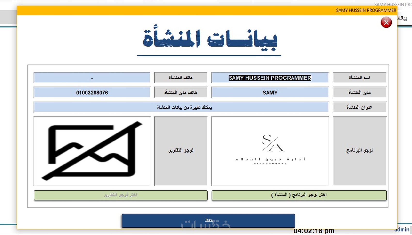 تم تصميم البرنامج بواسطتي Samy Hussein