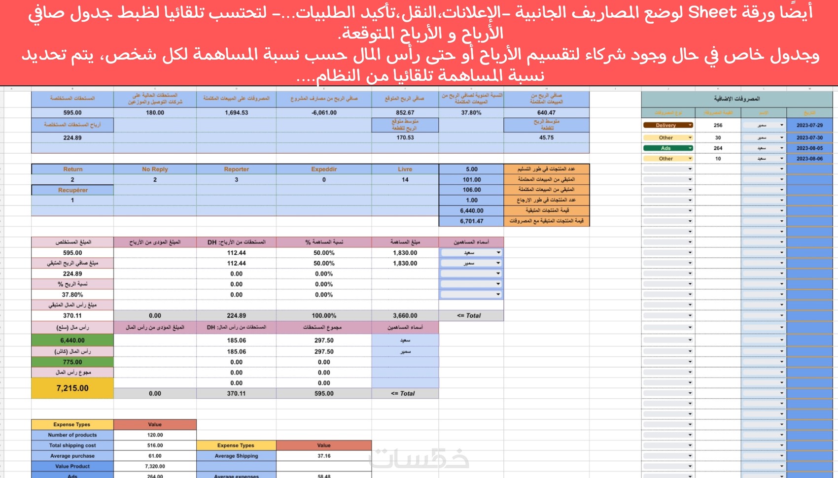 أقدم لك برنامج Sheet مميز لضبط حركة المنتجات وتتبعها بدقة مع برنامج إدارة المخزون والمبيعات والأرباح مع واجهة تقدم كل الإحصائيات بشكل تلقائي عبر واجهة سهلة الإستخدام .