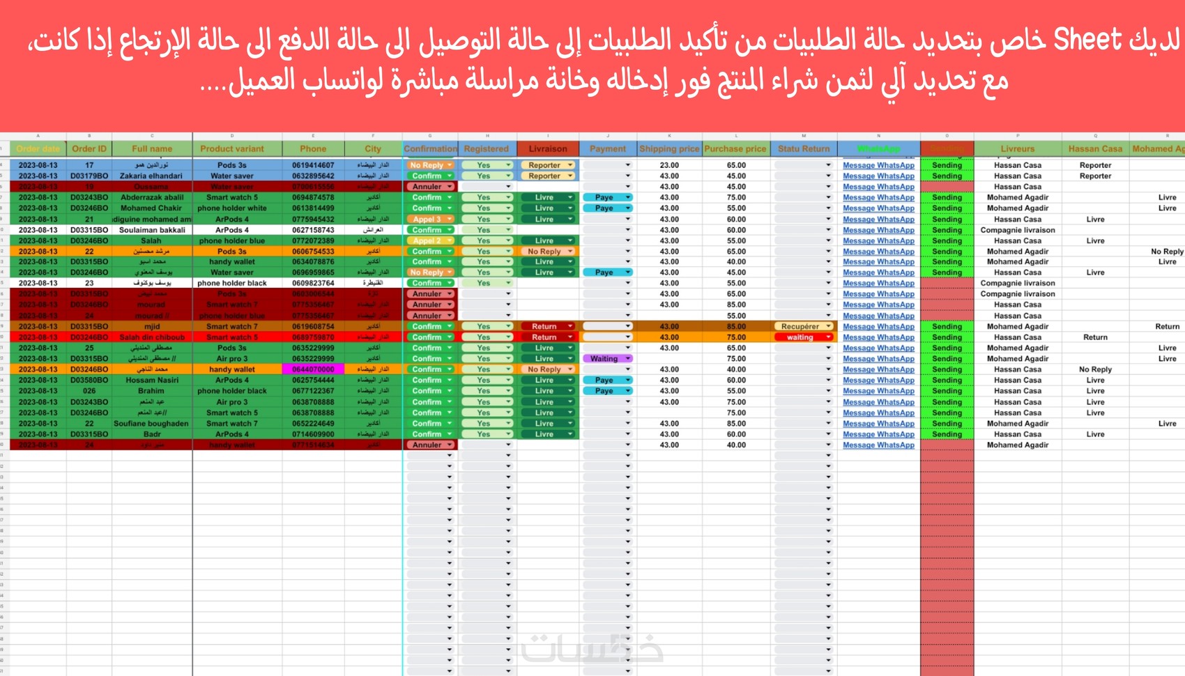 صفحة حالة الطلبيات: (لتحديد حالة كل الطلبيات)
