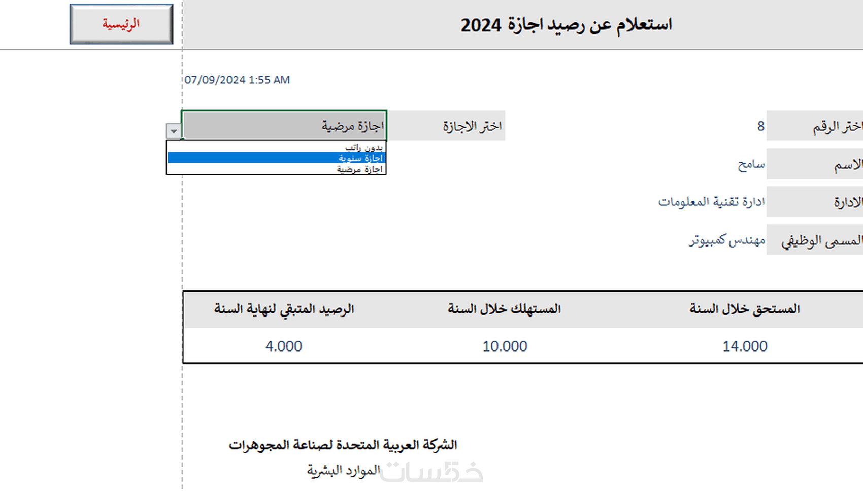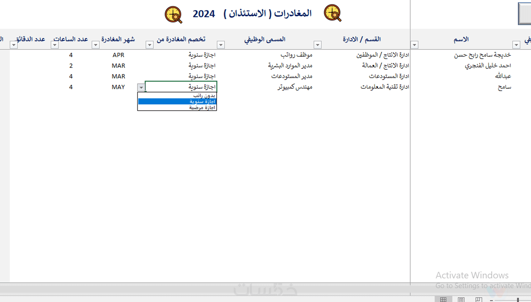 لحل مشكلة ادارة الاجازات والمغادرات وارصدتها فقد قمت انا بتصميم وتنفيذ اول برنامج اكسل لمعالجة ذلك الموضوع ، السيستم اكسل فقط بدون اكواد برمجية ، مقابل شراء الخدمة ستحصل على :