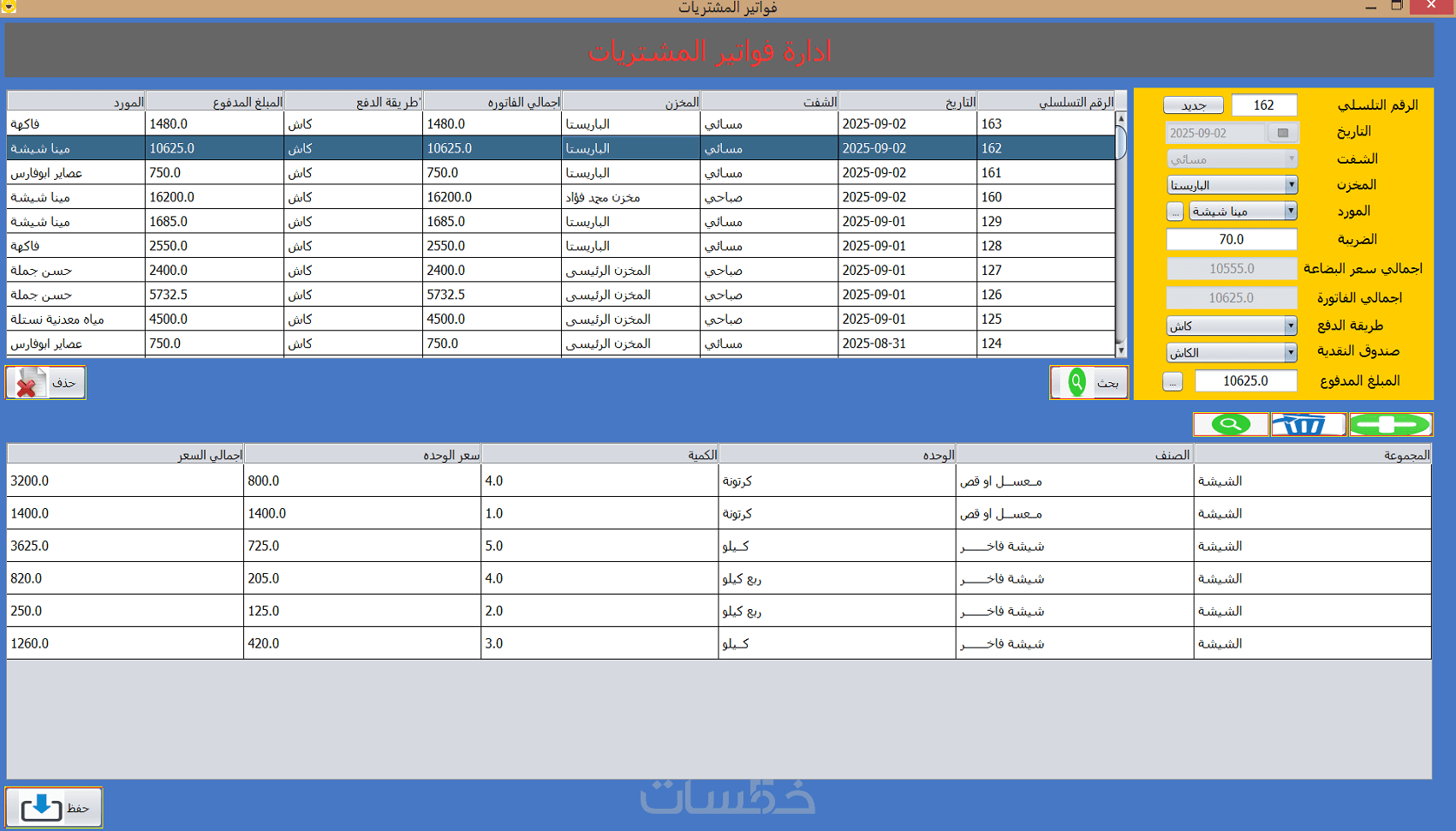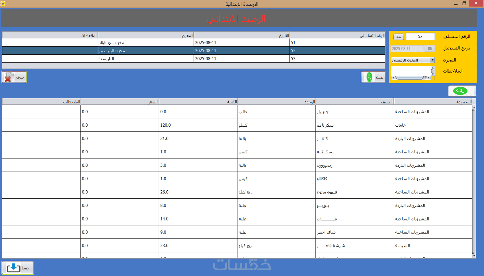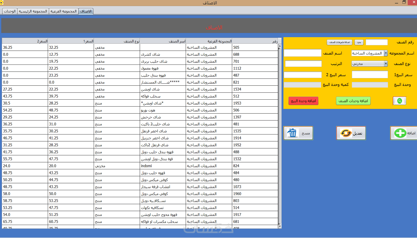 • اضافة عدد لانهائي من الاصناف وربطها بعدد لانهائي من الوحدات لكل صنف .