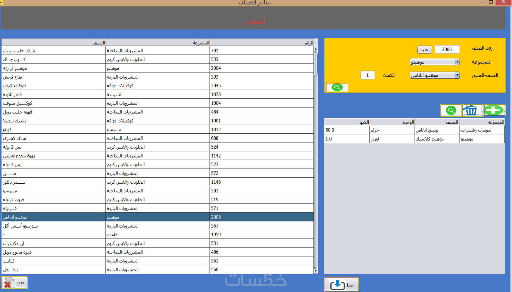 • نظام الريسبي (الوصفة) لتحديد تكلفة كل صنف بدقة وتحقيق أعلى أرباح