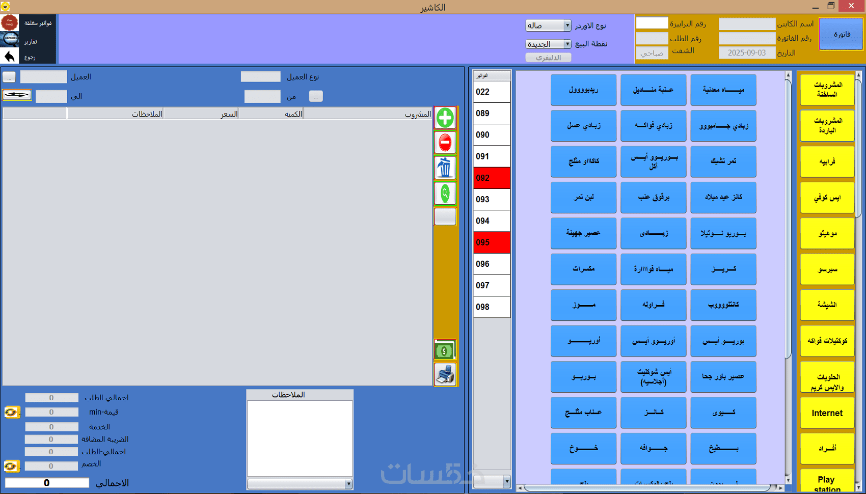نقدم لكم برنامجنا المتميز POS (كاشير) لإدارة المحلات التجارية بجميع أنواعها، مع تخصص خاص في الكافيهات والمطاعم .