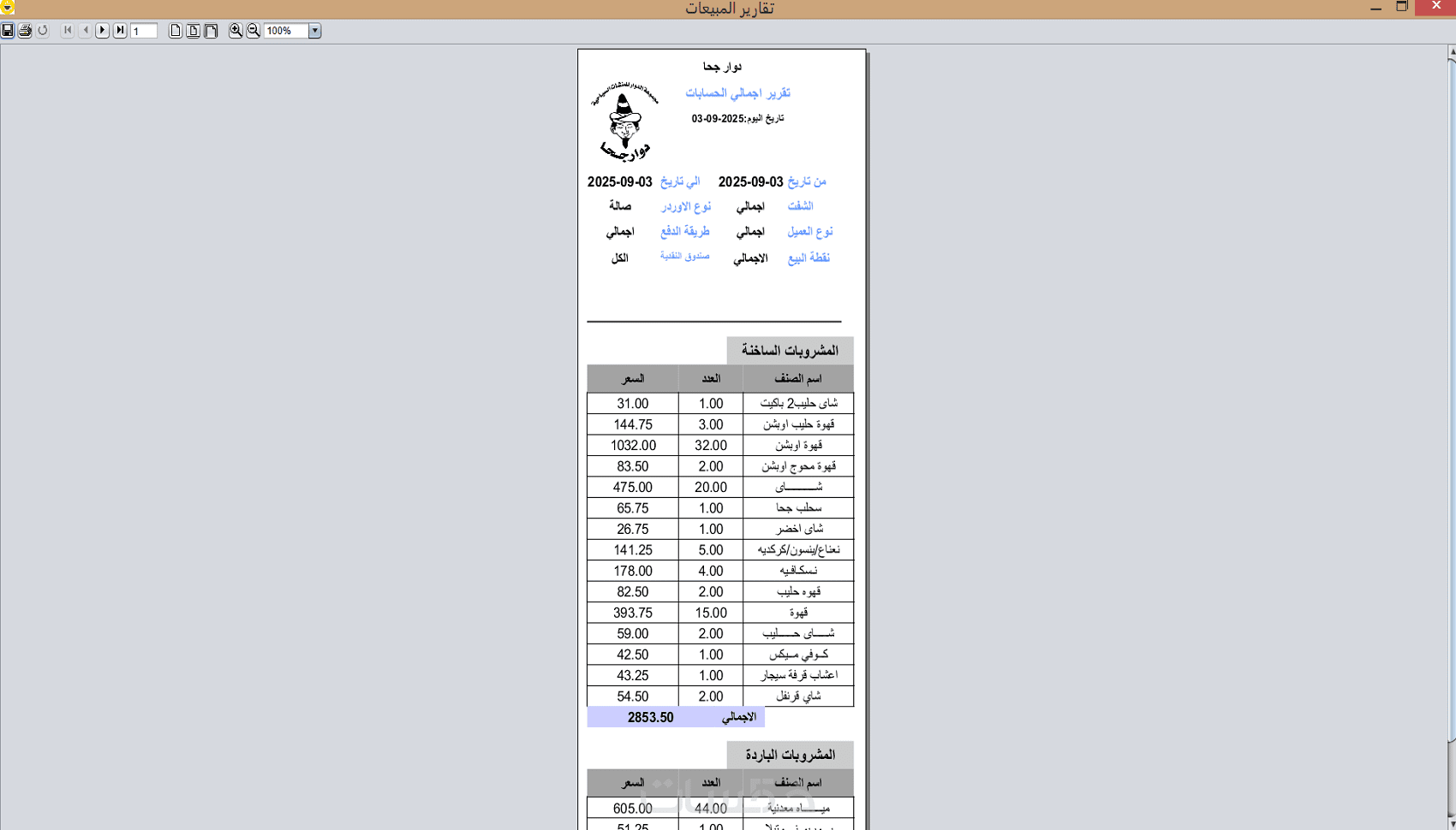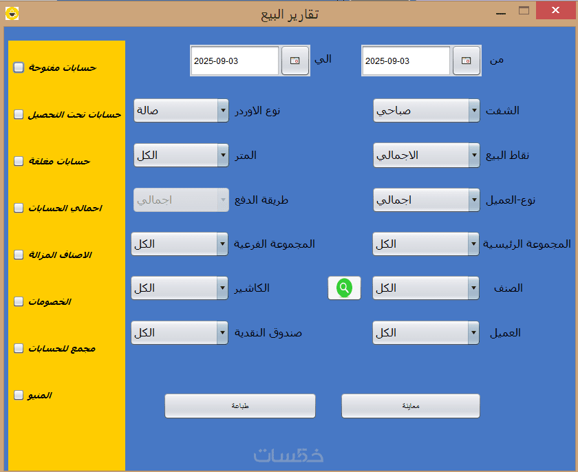 - نظام نقارير يومية للمبيعات