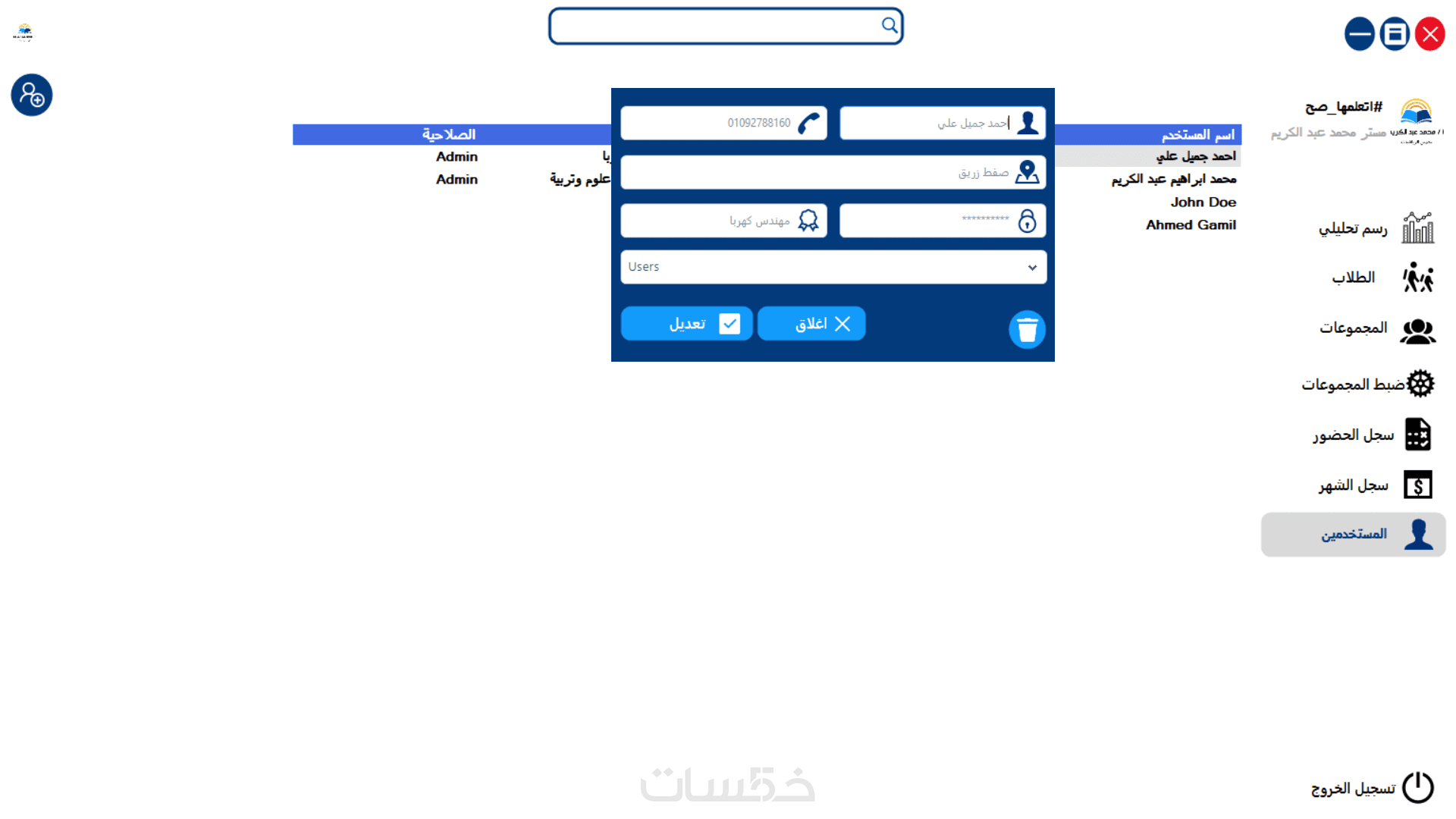 عمل خاصية تسجيل دخول واضافة صلاحيات لكل مستخدم